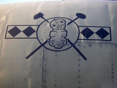Hun embleem: twee mijnbouw hamers in saltire, een tiki. Dit eskadron was hoofdzakelijk samengesteld uit Nieuwzeelanders en dit feit wordt herdacht door in het embleem een tiki op te nemen, dat de Maori's als nekversiering gebruiken en als gelukbrengend beschouwen.