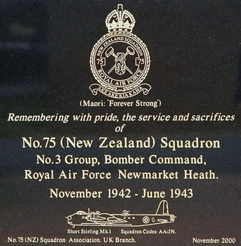 Uitgerust met Wellingtons, was dit squadron NZ (nr. 75) van de RAF de eerste Britse Gemenebest squadron dat werd gevormd in Bomber Command. Ze namen deel aan de eerste bombardementen in vijandelijke bezette gebieden, en tijdens de terugkeer van een aanval op Munster op 7/8 juli 1941, won een van haar bemanningsleden, Sergeant Pilot JR Ward van de RNZAF, zelfs het Victoria Cross. Tegen het einde van 1942 kreeg dit squadron de beschikking over Stirlings die meteen hebben bijgedragen aan de slag aan de Ruhr, de verwoesting van Hamburg en de beroemde 'raid' tegen de Duitse V-wapens in de experimentele fabriek van Peenemunde. In maart 1944 werden de Stirlings voor Lancasters verruild om op tijd deel te nemen aan de voorbereidingen en de steun aan de geallieerde invasie. Vermeld mag worden dat nadat de invasiebegonnen was, een Lancaster van dit squadron (ND917), een mark III bestuurd door piloot N.A.Williamson, RNZAF) op 30 juni 1944, de eerste zware Britse bommenwerper was, die landde in Normandië.