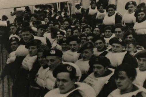 Instructie met zwemvesten op het motorschip Waterman (Bron:collectie legermuseum)