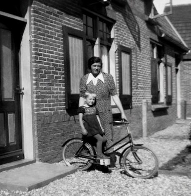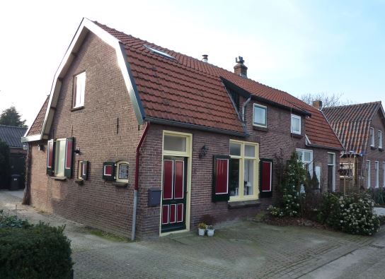 Roeltje en Aaltje voor hun huis aan de Dwarsstraat 8 in Geldermalsen. Zo ziet het huis er tegenwoordig uit.