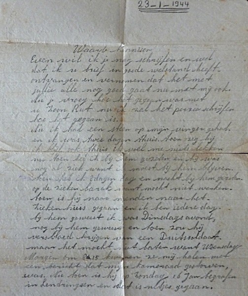 Op 6 januari 1944 krijgt zijn familie in Opijnen van de Lagerführer uit Hönnetal een alarmerende brief: