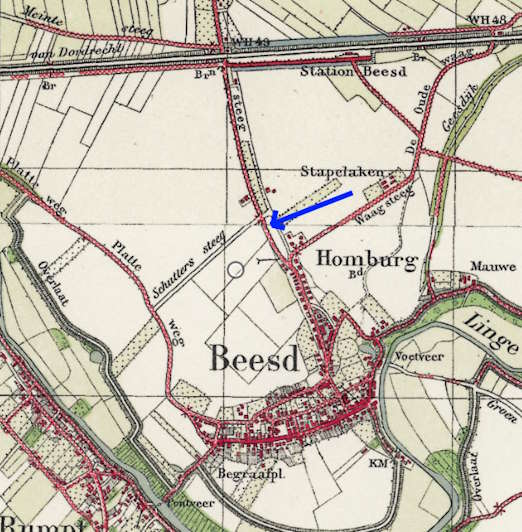Locatie: Parkweg in Beesd. Exact dezelfde locatie als in het verhaal van Adriaan Piek. De militaire colonne reed door de Parkweg richting de Rijksweg en dat betekent waarschijnlijk: