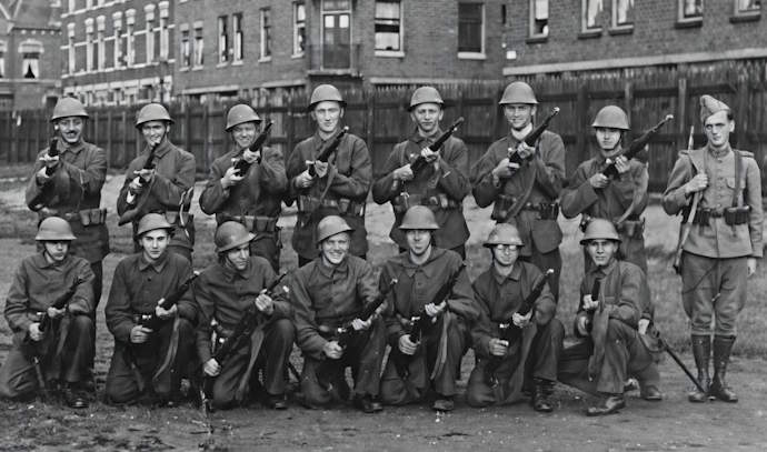 Deze foto is vermoedelijk genomen tijdens de mobilisatie in het westen van het land. Koen zit tweede van linksvoor.