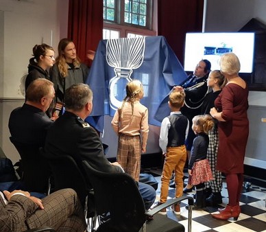 Na de kolonel nam de moeder van Jeroen, Greet Severs, het woord. “Een gebouw kun je niet vergelijken met een persoon. Toch durf ik te zeggen: dit gebouw past bij Jeroen. Het is stoer, functioneel en duidelijk aanwezig. Ik wil dan ook alle collega’s van Jeroen bedanken die het mogelijk hebben gemaakt dit te realiseren.” Na de opening konden de aanwezigen het monument in de hal bekijken.