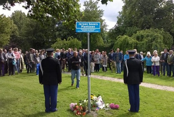 Op intiatief van de webmaster, maar onder verantwoording van de Stichting Veteranen Buren, is op 5 september 2015 onder grote belangstelling een parkje aan het Kochpad in Zoelmond vernoemd naar Jeroen Severs. Vanaf nu heet het Jeroen Severs Plantsoen. Vanwege het slechte weer kwam het gezelschap bijeen in de in het nabijgelegen Jan Evangelistkerk. Daar spraken burgemeester De Boer, de aalmoezenier van de Marechaussee Tim van Kesteren, Greet Severs en twee leerlingen van de dorpsbasisschool. De muzikale begeleiding was in handen van Harmonie Kunst en Vriendschap uit Maurik. Het weer klaarde gelukkig bijtijds op en de eigenlijke onthulling van het naambord door de kleinkinderen van de ouders van Jeroen, kon toch plaatsvinden in het park.